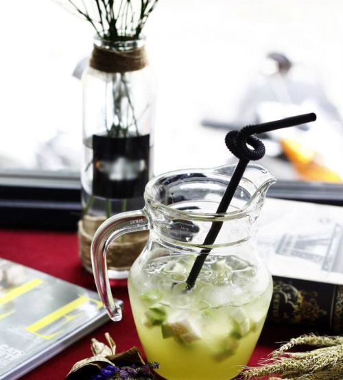 Thay vì rót ra một cốc khác để uống, khách dùng ống hút để uống trà từ chiếc cốc “bình đựng nước” này.